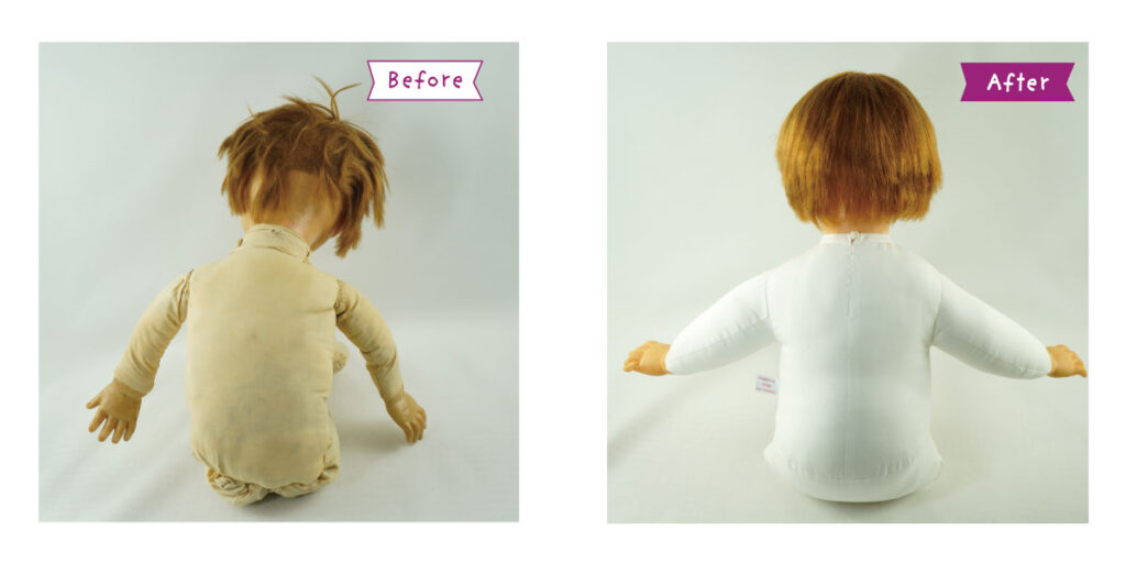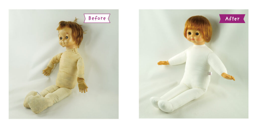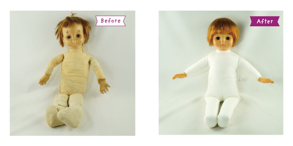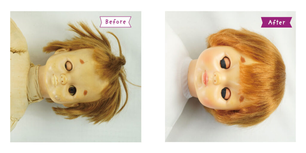 *顔・手・ソフトビニール部分のクリーニング *顔の彩色直し *目の治療 *まつ毛の再生 *髪の毛のシャンプー *増毛&ヘアーセット *まぶたの塗装 *首のシミ除去 *布ボディの新調