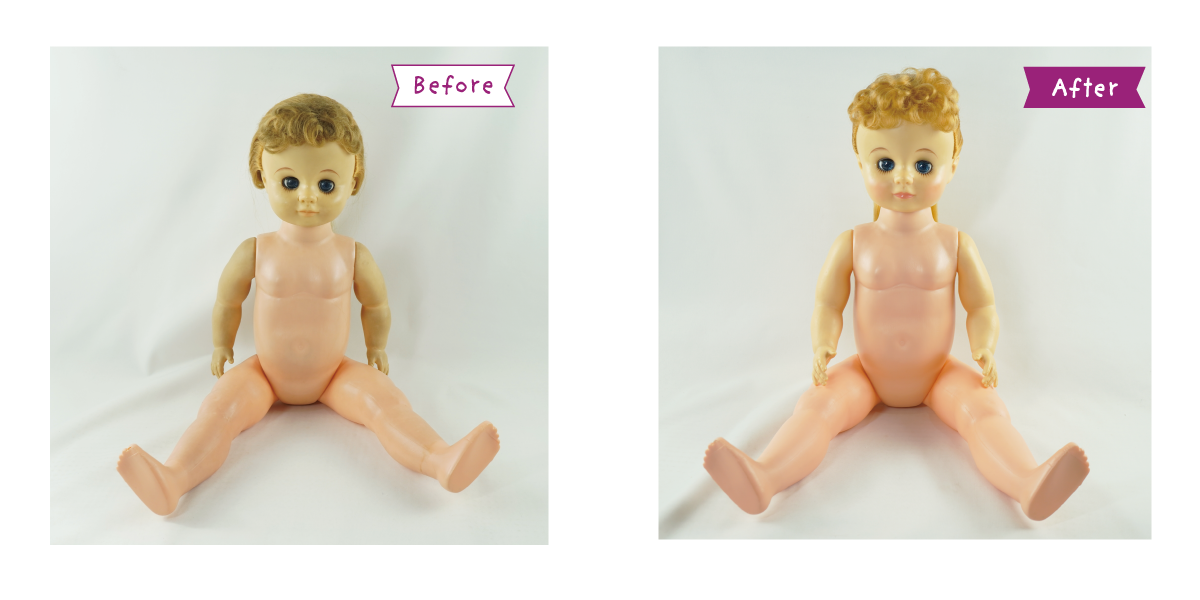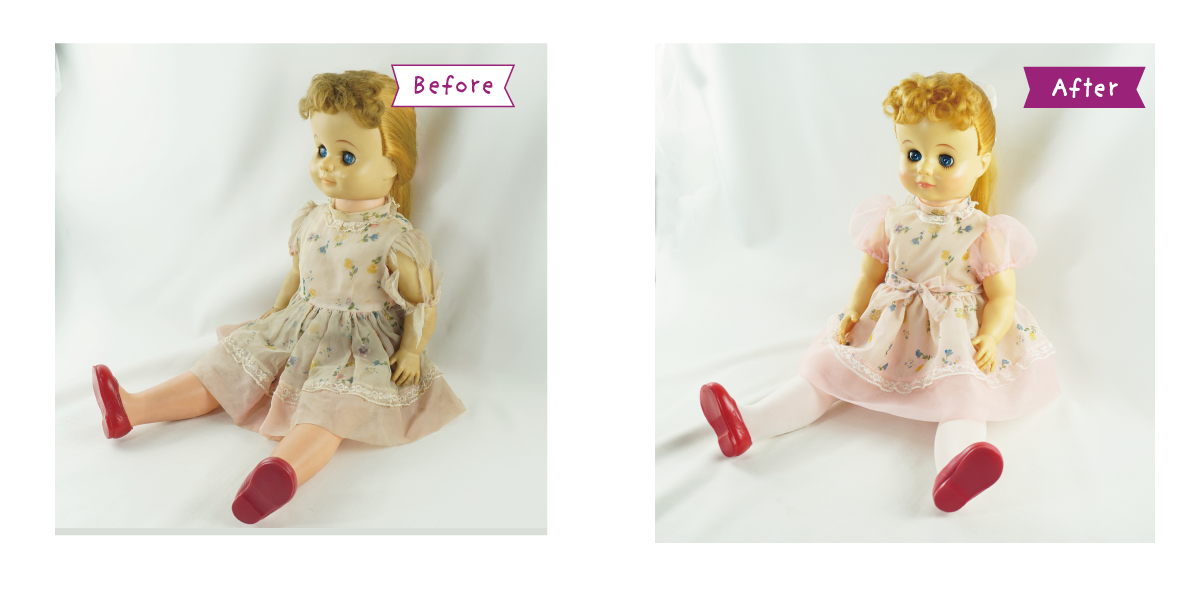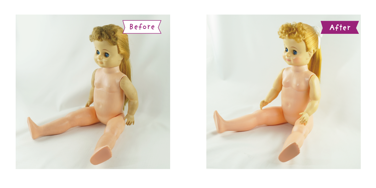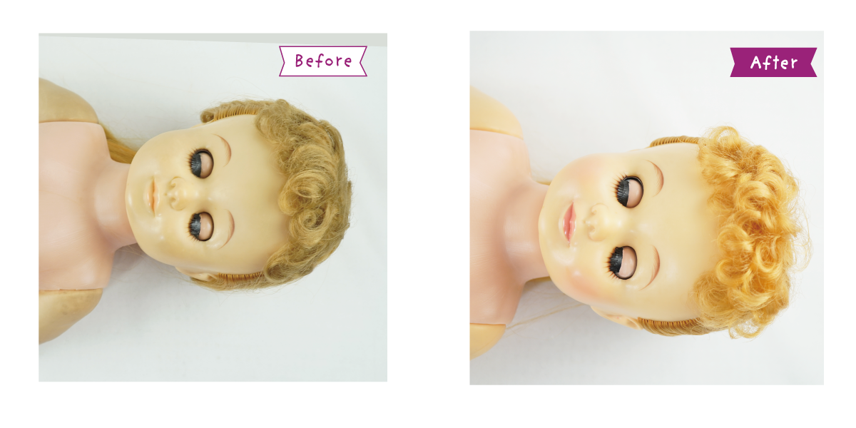 *全身ビニール部分のクリーニング *髪の毛のシャンプー・カール&セット *髪の毛の増毛 *顔の彩色直し *ボディ・かかとの欠けの治療 *元のお洋服のクリーニング・補修 (ワンピース) *元の靴のクリーニング *セミオーダードレス