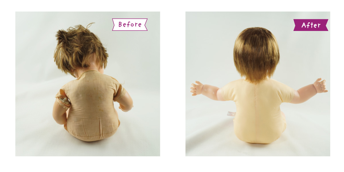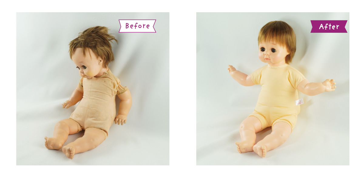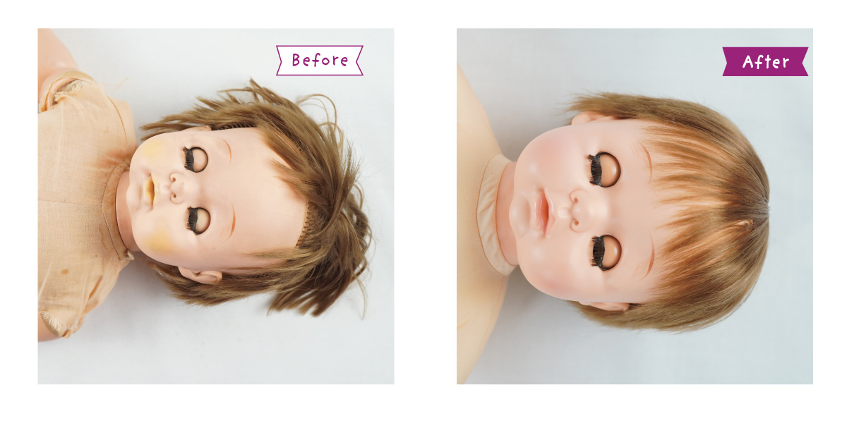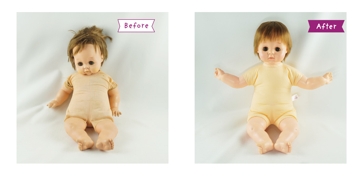 *顔・手・脚・ソフトビニール部分のクリーニング *髪の毛のシャンプー・セット *顔の彩色直し *布ボディの新調